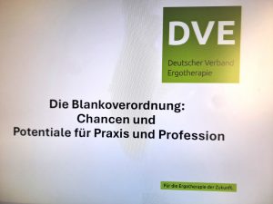 Am Freitag, 13.03.2026 nahmen unsere Bürokräfte Simone und Verena an einer Schulung vom DVE (Deutscher Verband der Ergotherapeuten) zum Thema „Blankoverordnungen“ teil.